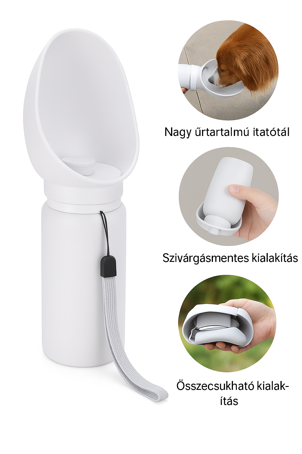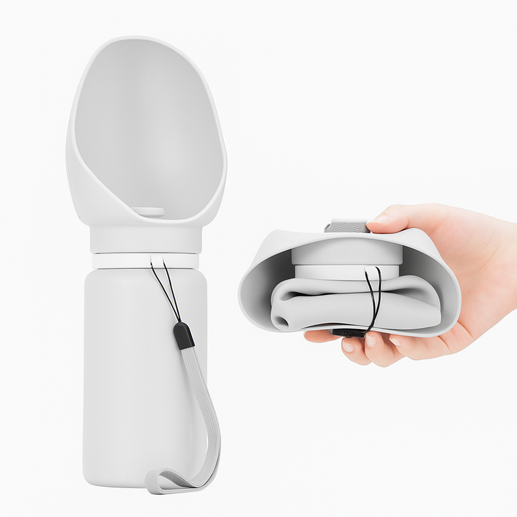 💡 Tipp: Töltsd meg indulás előtt vízzel, és ha megszomjazik a kutyusod, hajtsd le a szilikon tálat – máris kényelmesen ihat!