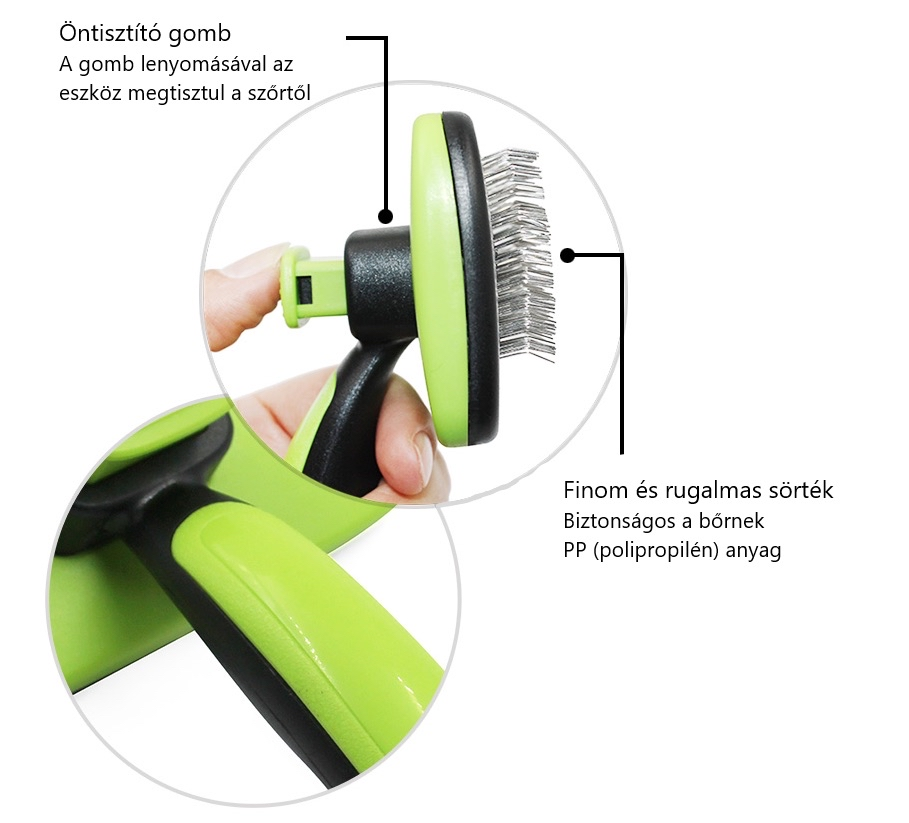 Praktikus kefe, amellyel pillanatok alatt megszabadíthatod kedvenced bundáját a kihullott szőrtől és gubancoktól. A hátulján található gombnyomással a szőr azonnal leválik a keféről – így a tisztítás gyerekjáték.